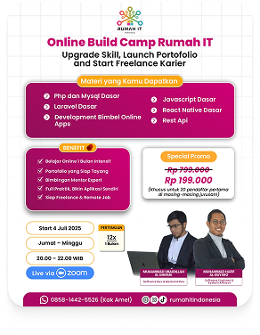 Kelas Online BuildCamp Rumah IT adalah program belajar intensif bagi mereka yang sudah paham dasar, ingin langsung praktek skill yang relevan dengan industri,meningkatkan penjualan dengan digital dan membuka peluang penghasilan dari skill digital.